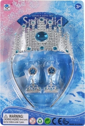 O coroniță minunată pentru micile prințese, inspirată de Regatul de Iarnă, este accesoriul perfect pentru orice costum. Setul include o coroniță și cercei, decorate cu elemente albastre pentru un aspect fermecător.
