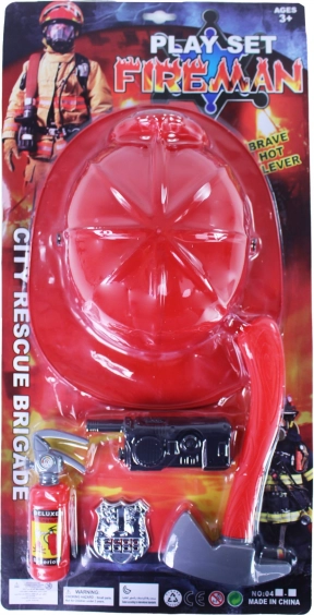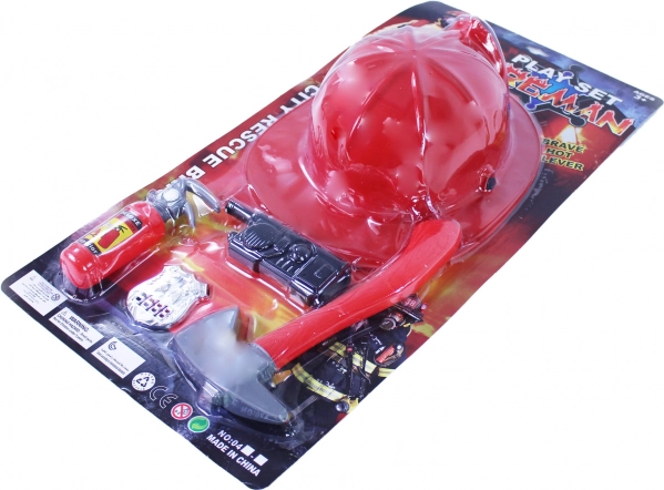 La treabă, echipa de salvare! Acest set de pompier pentru copii include cască, toporaș, stingător, stație walkie‑talkie și insignă – tot ce au nevoie micii eroi. Toate accesoriile sunt realizate din PVC durabil.