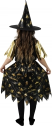 Combinația elegantă de negru și auriu cu motive strălucitoare garantează că mica vrăjitoare va ieși în evidență la orice eveniment.