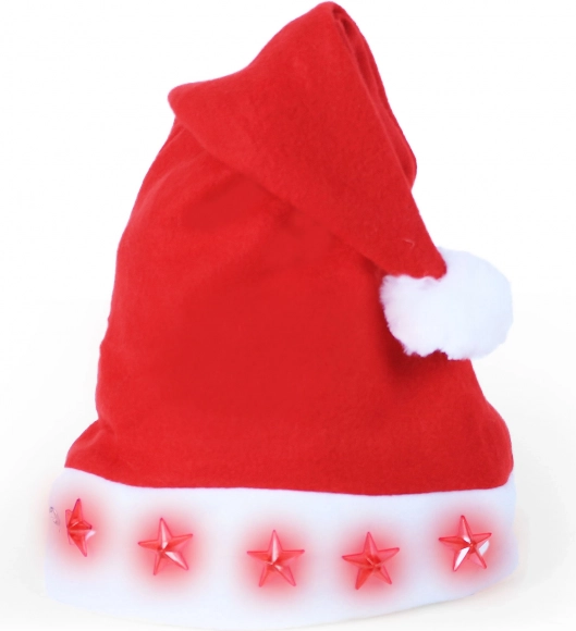 Înveselește atmosfera sărbătorilor cu această căciulă de Crăciun din fetru, stilată, care are steluțe clipitoare în partea din față. Printr-o simplă apăsare a butonului activezi efectele luminoase – alegerea perfectă pentru petreceri de Crăciun, reuniuni de familie și poze tematice. Sunt incluse 2 baterii LR44 pentru utilizare imediată.