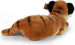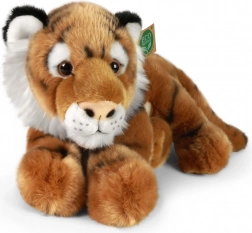 Acest tigru de pluș culcat îmbină finețea, calitatea și grija pentru natură. Prelucrarea manuală precisă și dungile detaliate au un aspect realist, făcându-l un companion îndrăgit și o decorațiune superbă. Datorită umpluturii moi și pufoase din PET reciclat, jucăria este nu doar plăcută la atingere, ci și prietenoasă cu planeta.