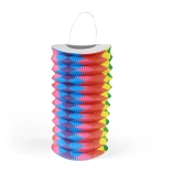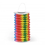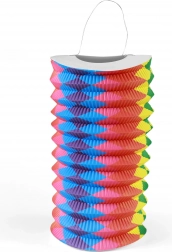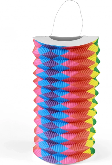 Lampionul curcubeu aduce culori vesele și o atmosferă jucăușă la orice eveniment. Se remarcă prin dungile intense în tonuri de roșu, galben, verde și albastru, care arată minunat atât ziua, cât și seara, atunci când este iluminat. Este un accesoriu excelent pentru procesiuni cu lampioane, aniversări și decoruri de sezon.