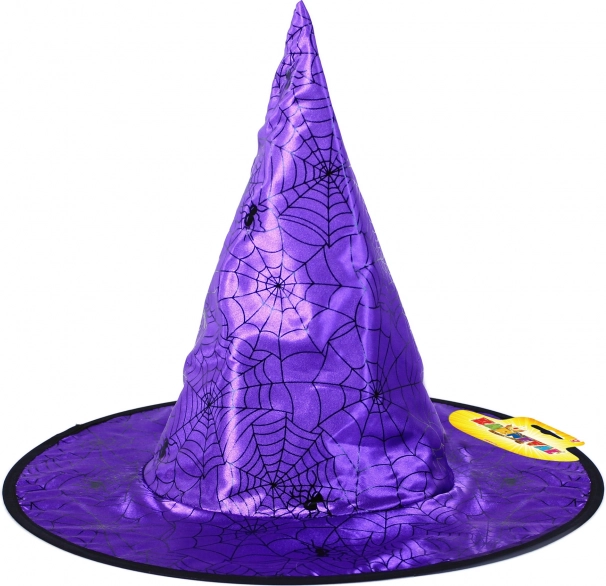 Pălărie vrăjitorească pentru copii, stilată, în culoare mov, cu motiv de pânze de păianjen și păianjeni, ideală pentru Halloween, carnaval și petreceri tematice. Datorită designului său expresiv și construcției ușoare, devine accesoriul indispensabil al costumului și îl va ajuta pe copilul dumneavoastră să strălucească la orice eveniment.