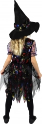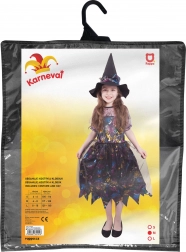 Oferă-i micii vrăjitoare un costum perfect, care se evidențiază la orice petrecere. Rochia ușoară și plăcută în nuanțe de negru–mov este decorată cu motive de Halloween pline de culoare, ce conferă ținutei un aspect jucăuș și magic. Setul include o pălărie ascuțită asortată, care completează stilul clasic de vrăjitoare.