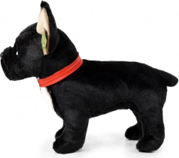 Drăgălaș și realist, bulldogul francez de pluș în variantă neagră, cu zgardă roșie, îi va încânta pe micii și marii iubitori de căței. Este realizat din pluș de înaltă calitate și umplut cu material eco-friendly din PET-uri reciclate. Poziția în picioare și prelucrarea manuală oferă jucăriei un aspect autentic – ideală ca partener de joacă în camera copiilor și ca cadou minunat.
