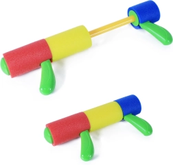 Materialele moi din spumă permit absorbția ușoară a apei și stropirea țintelor. Pistola cu apă este disponibilă în culori variate, ceea ce adaugă aspectului atractiv al jucăriei. Datorită mecanismului de pompare simplu, este ușor de folosit chiar și de către copiii mai mici.