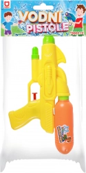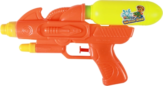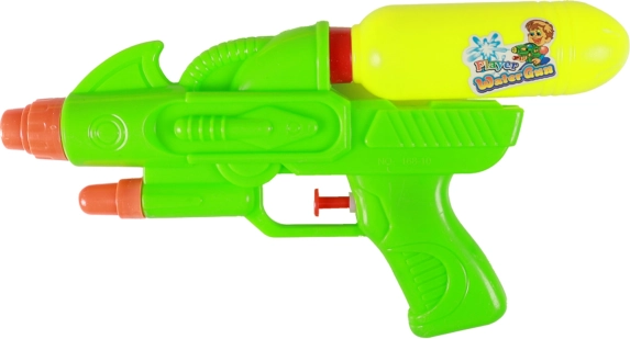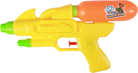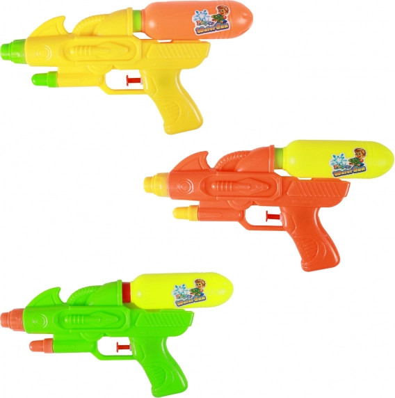 Pistola cu apă se remarcă prin culorile vii și dimensiunea compactă, care permite manevrarea ușoară chiar și pentru copii.