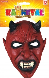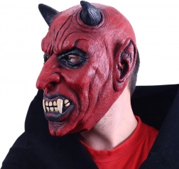 Mască din latex cu detalii înalte și elemente realiste de diavol, inclusiv coarne negre și dinți ascuțiți, care adaugă o autenticitate înfricoșătoare.