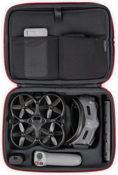 Proiectată pentru a încăpea confortabil: DJI AVATA, DJI Goggles 2, telecomanda DJI, până la 5 baterii, încărcător și elemente mici precum filtre sau carduri de memorie. Materialele rezistente PU + EVA și protecția sporită împotriva stropilor de apă asigură o protecție de încredere în condiții variabile.