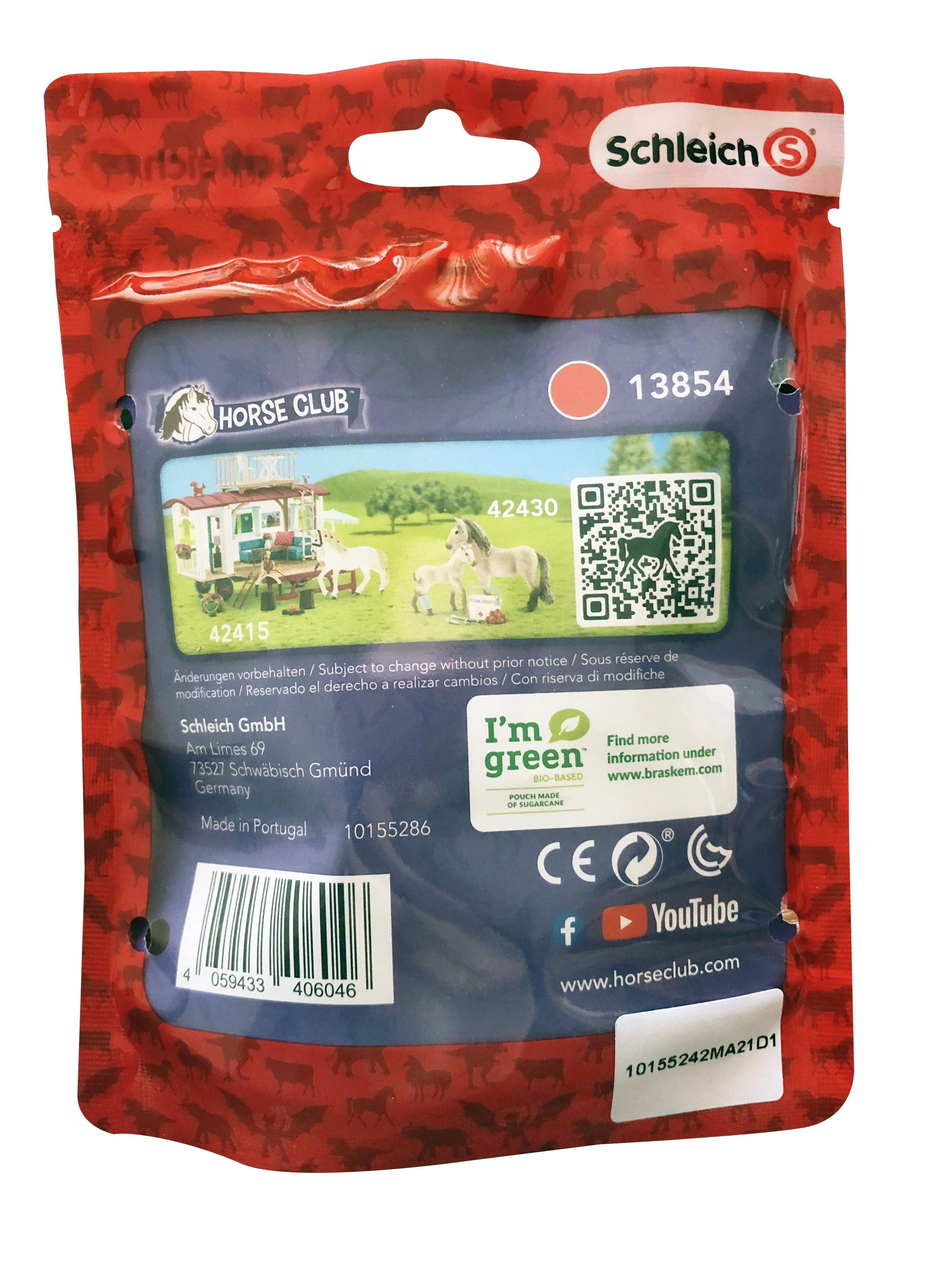 Seria Horse Club Red aduce un ambalaj cu design special: figurina este așezată într-o punguță semitransparentă cu imprimeu frumos, armonizat cu tema seriei. Produsul are aspect de cadou gata făcut și va încânta orice fan al grajdurilor de cai.
