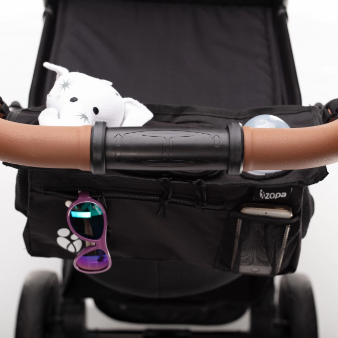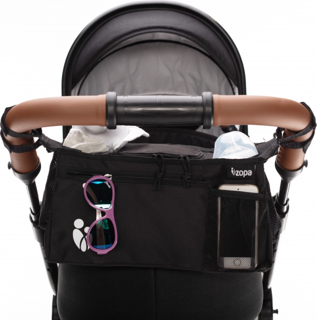 Organizer practic și bine structurat pentru cărucior, ideal pentru plimbările cu bebelușul. Partea din față a organizatorului include un buzunar mare cu fermoar pentru mărunțișurile de care mama ar putea avea nevoie în timpul plimbării. De asemenea, partea frontală este prevăzută cu un buzunărel din plasă pentru telefonul mobil, astfel încât mama are mereu vizibilitate când se întâmplă ceva cu telefonul, în ciuda modului silențios. Astfel, bebelușul nu este trezit de nimic. În partea centrală se află un buzunar mare cu fermoar pentru depozitarea lucrurilor necesare. Pe laterale are două suporturi pentru băuturi.