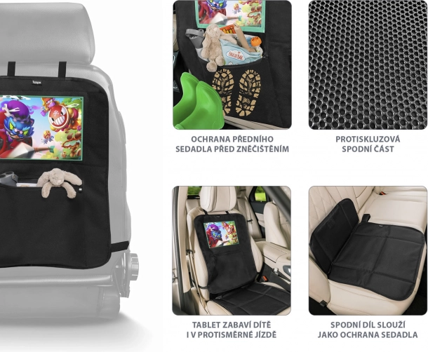 Protecție de scaun auto sub scaunul pentru copii, cu buzunar pentru tabletă
