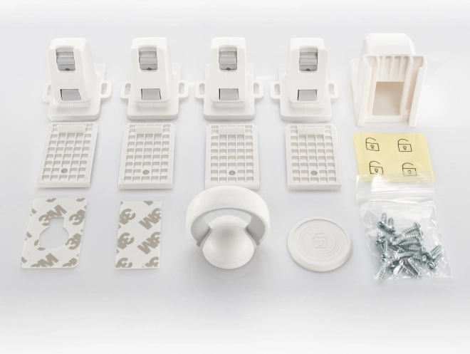 • Pachetul conține 4 bucăți de închizătoare, șablon pentru montaj mai ușor, cheie magnetică, bandă adezivă 3M de calitate, set de șuruburi și autocolante informative pentru aplicarea precisă a cheii magnetice. În pachet este inclus și un suport de agățare pentru depozitarea cheii, astfel încât să o aveți mereu la îndemână.