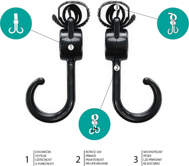 Cârlig dublu pentru cărucior 2 buc., Negru