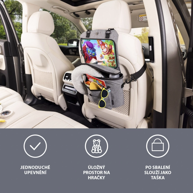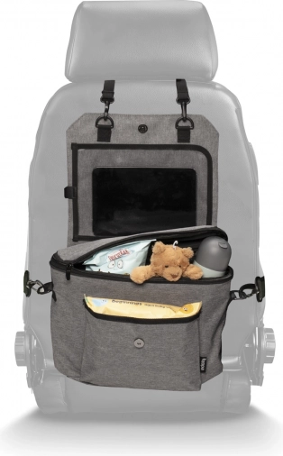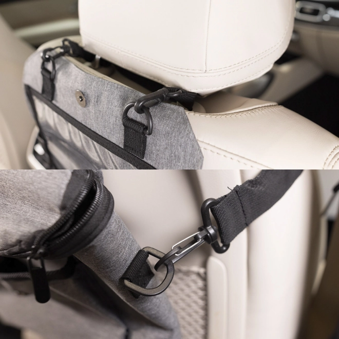Organizatorul se agață cu ușurință pe partea din spate a scaunului din față.
