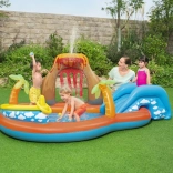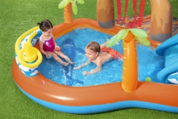 Terenul de joacă acvatic gonflabil Bestway Vulcan transformă grădina într-un centru al distracției estivale. Copiii se vor bucura de alunecarea pe tobogana gonflabilă moale, stropitul sub dușul de apă și joaca cu bile și elemente de aruncare. Datorită bazinului puțin adânc, centrul este potrivit pentru cei mai mici, în timp ce PVC-ul rezistent și valva de golire facilitează utilizarea și întreținerea.