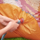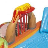 Tobogana gonflabilă moale și dușul vulcanic transformă fiecare zi într-o aventură răcoritoare. Doar conectezi furtunul de grădină și distracția poate începe.
