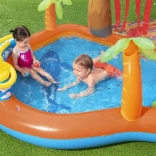 Pentru confort maxim, nu lipsesc bazinul de bălăcit detașabil, valva practică de golire și peticul de reparație din pachet. Designul colorat, tropical invită la explorare și susține mișcarea activă și jocul creativ.
