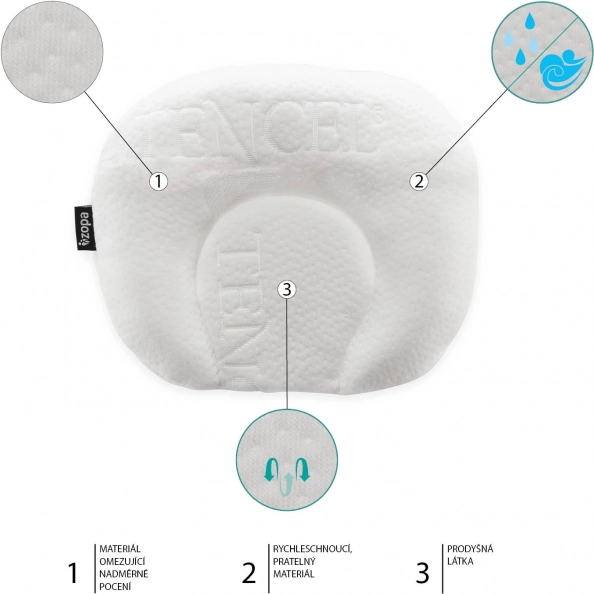 Partea centrală este concepută pentru a proteja sugarii împotriva dezvoltării sindromului capului turtit. Datorită respirabilității ridicate, previne transpirația excesivă.