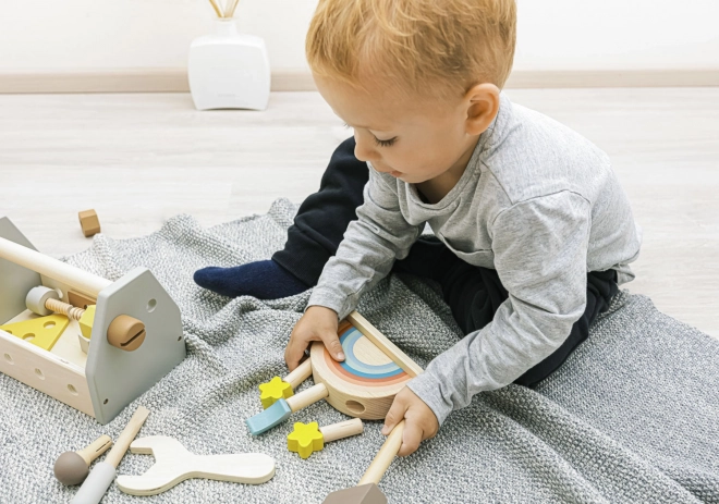 Set de scule din lemn pentru copii cu cutie