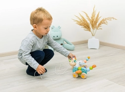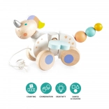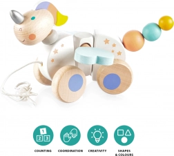 Jucăria de tras Unicorn de lemn este un partener excelent pentru copii la primii lor pași. Datorită mecanismului simplu, aripile și coada unicornului fâlfâie în timpul mersului, ceea ce îi distrează pe copii ore întregi.