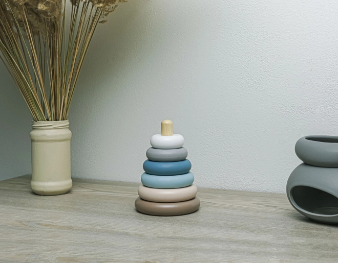 Inele de stivuire din lemn pentru copii de la 16 luni.