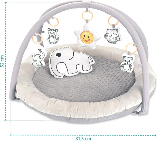 Covorașul de joacă moale Comfort este prima jucărie ideală pentru bebelușul dumneavoastră. Jucăriile interactive din pluș, cu zornăitor, motivează copilul într-un mod distractiv să își antreneze coordonarea mână–ochi și, mai târziu, prinderea. Jucăriile se pot detașa ușor de pe bara de activități și pot fi folosite pe scaunul auto sau pe cărucior.
