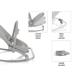Pentru calmarea copiilor, leagănul oferă vibrații ajustabile independent și o selecție între cântece de leagăn și sunete din natură. Volumul și intensitatea vibrațiilor pot fi setate pe trei niveluri. Bara cu jucării contribuie la distracția celor mai mici.