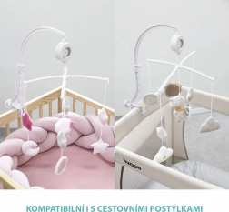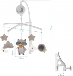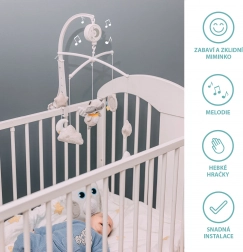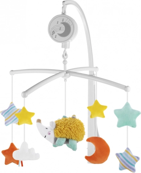 Caruselul muzical pentru pătuț este un ajutor ideal pentru calmarea și adormirea copiilor. Datorită culorilor blânde și motivelor cu arici drăgălaș, devine o frumoasă decorație în camera copilului. Mecanismul muzical cu întors, care funcționează fără baterii, și jucăriile din pluș dezvoltă abilitățile auditive, motorii și vizuale ale copiilor.