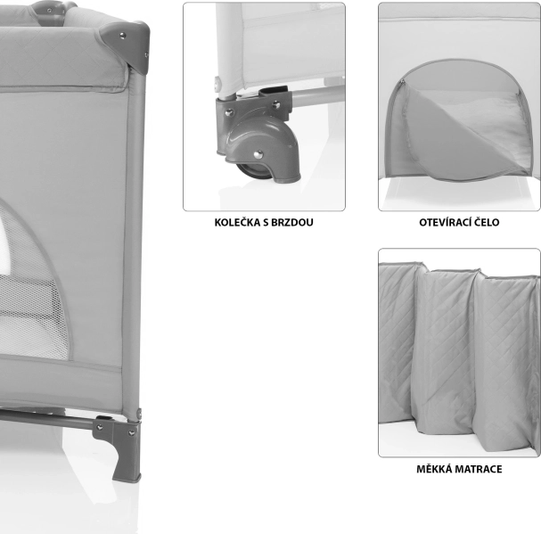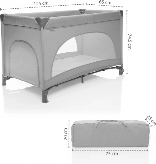 Se pliază și se desfășoară ușor în câteva secunde. Structura, împreună cu salteaua, este depozitată într-o geantă de transport practică. Pătuțul Lely poate fi mutat cu ușurință chiar și atunci când este desfăcut, datorită roților cu frână.