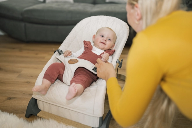 Leagănul Miura îi permite copilului să fie în centrul atenției, în timp ce părinții se pot ocupa de treburi sau de divertisment. Curelele moi asigură siguranța maximă a copilului în leagăn, în timp ce se odihnește sau se joacă. Țesătura rezistentă, cu model diamant, oferă confort și, în același timp, o susținere adecvată.