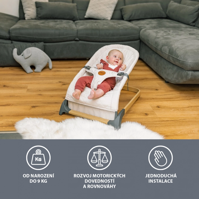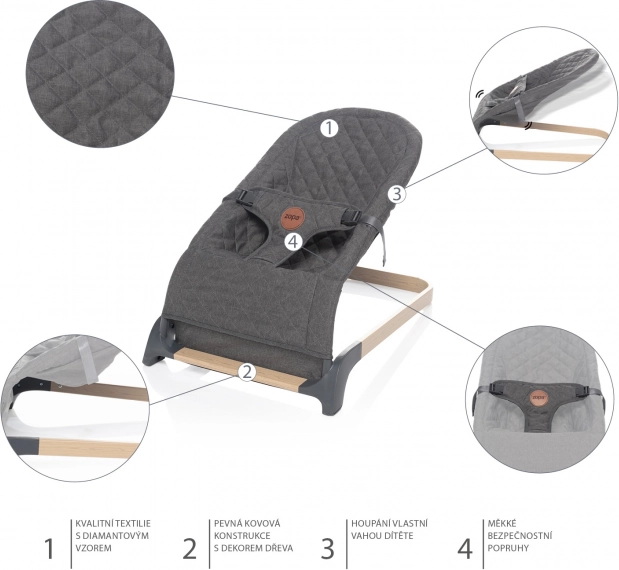 Leagănul este ușor și simplu de transportat. Datorită designului modern, cu decor de lemn, se integrează cu ușurință în orice interior. Instalarea este foarte simplă. Leagănul respectă standardul de siguranță EN 12790.
