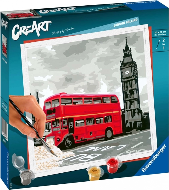Setul creativ CreArt: London pentru copii 12+. Pictură, desen și creație într-un ambalaj compact 22,2 × 22,2 × 4,8 cm. Susține creativitatea și motricitatea fină.