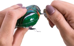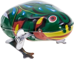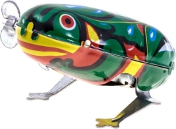 Această drăguță broască de jucărie este fabricată din metal într-o culoare verde frumoasă și este acționată de un mecanism cu arc ce se întinde cu cheița. Broasca aduce un zâmbet pe fața tuturor generațiilor. Datorită dimensiunilor mici, încape ușor în mâna copilului și este perfectă pentru momente haioase, cum ar fi atunci când este ascunsă într-o geantă. Asigurați-vă că o aveți ca talisman pentru noroc!