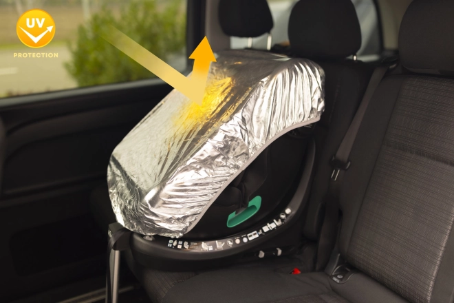 Fără scaun auto încins, în care copilul să stea inconfortabil. Protecția practică reflectă razele solare și menține scaunul auto răcoros dedesubt chiar și în lunile de vară. Protecția se instalează ușor și se potrivește majorității tipurilor de scaune auto.