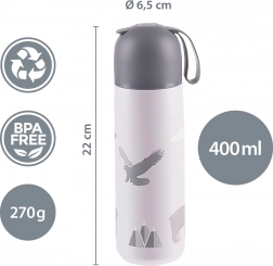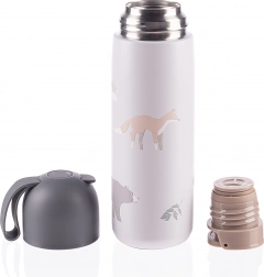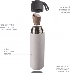 Pentru transport confortabil, termosul este echipat cu un mâner din silicon și o bază antiderapantă pentru stabilitate pe orice suprafață. Este fără BPA și, prin utilizare repetată, ajută la reducerea consumului de plastic de unică folosință.