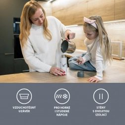 Capacul etanș nu curge, iar dopul superior permite o turnare comodă, fără vărsare. În plus, capacul servește drept ceașcă practică.