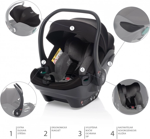 Protecție laterală perfectă, insert pentru nou-născut reglabil din spumă cu memorie, carcasă din polipropilenă care absoarbe și mai bine impactul, testat în Europa – acesta este scaunul auto XS i-Size.