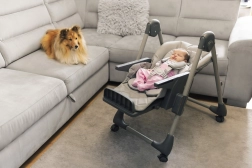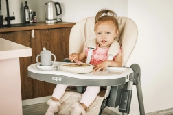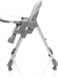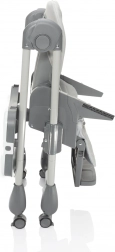 Scăunelul de masă Monti 2 poate fi pliat cu ușurință, iar datorită dimensiunilor sale compacte în stare pliată nu va ocupa mult spațiu. În plus, este echipat cu roți cu frână pentru manipulare și mutare facile. Pentru o manevrare comodă, tăvița poate fi agățată pe scăunel, astfel încât să nu incomodeze atunci când nu este folosită.