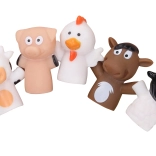 Pregătiți-vă propriul mini-teatru cu cinci animăluțe simpatice pentru deget. Păpușile de deget din cauciuc moale se pun confortabil pe degetele copiilor și îi ajută să-și dezvolte imaginația, narațiunea și comunicarea. Sunt grozave pentru inventarea de povești, de exemplu din mediul fermei.
