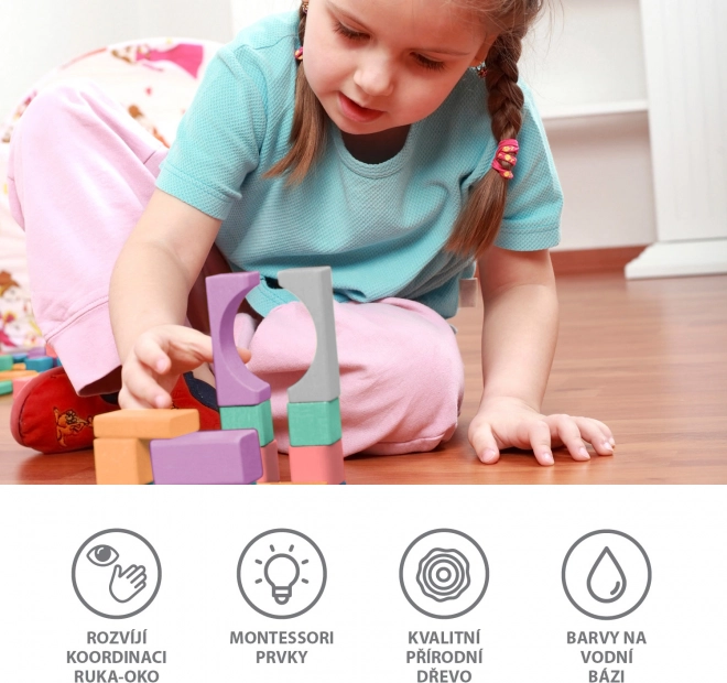 Cu acest set de construcție din lemn, copiii descoperă bucuria de a construi și de a combina propriile creații. Cuburile sunt fabricate din lemn de calitate și sunt colorate variat pentru a încuraja creativitatea și imaginația. Fiecare piesă este realizată cu atenție la siguranța copiilor. Sunt ideale pentru construirea de turnuri, clădiri și alte structuri, oferind ore nesfârșite de distracție.