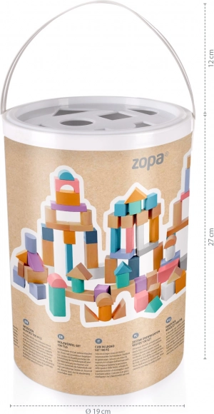 Setul include un găleată practică pentru depozitare și transport ușor. Capacul găleții servește și ca joc de recunoaștere a formelor, fiind excelent pentru învățare și distracție suplimentară. Datorită mânerului practic, puteți lua cuburile oriunde, permițând copiilor să se joace acasă sau afară.
