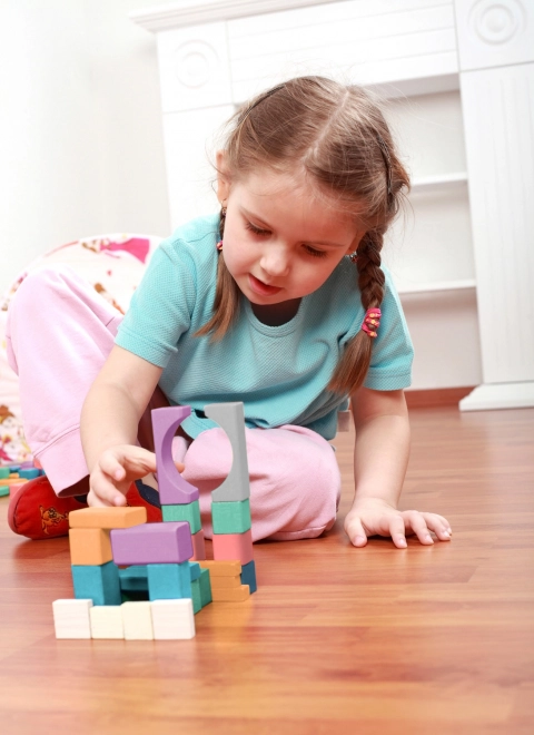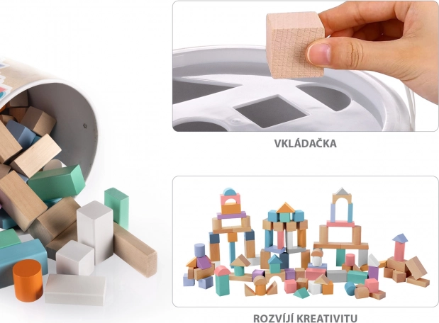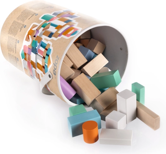 Cuburile vin în diferite forme, inclusiv cuburi, cilindri și triunghiuri, în nuanțe pastelate pentru a stimula creativitatea.