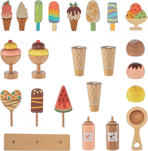 Setul include diverse delicatese de înghețată pentru dezvoltarea imaginației copiilor.