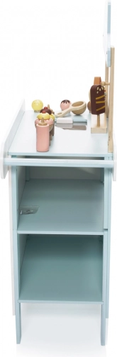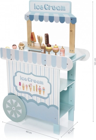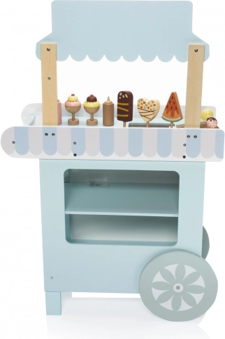 Standul mobil de înghețată din lemn este instrumentul ideal pentru dezvoltarea imaginației și abilităților sociale ale copiilor. Acest set atent proiectat este echipat cu toate proprietățile necesare, inclusiv delicatese de înghețată realiste și un congelator pentru a păstra înghețata mereu proaspătă. Copiii pot juca rolul vânzătorului de înghețată și pot crea delicatese delicioase de înghețată.