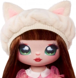Păpușa cu ochi mari și expresivi și păr turcoaz, cu o pălărie pufoasă cu urechi de urs, atrage copiii la joacă și alint datorită aspectului său viu colorat.