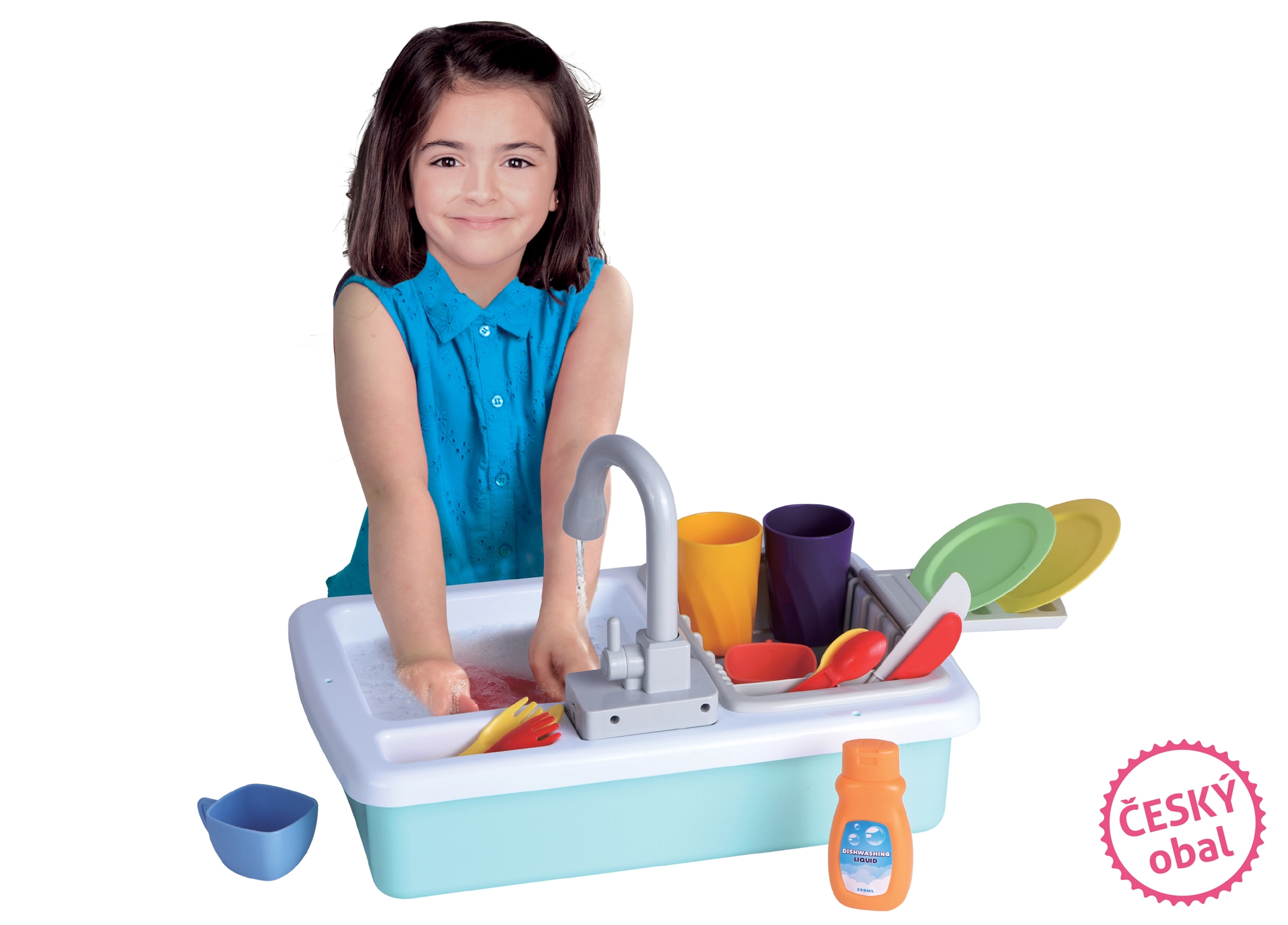 Pachetul include accesorii practice de bucătărie pentru a începe joaca imediat: căni, farfurii, ceșcuțe, tacâmuri și chiar detergent de vase pentru o joacă și mai realistă. Chiuveta este un accesoriu grozav pentru orice bucătărie de jucărie și asigură ore întregi de distracție.