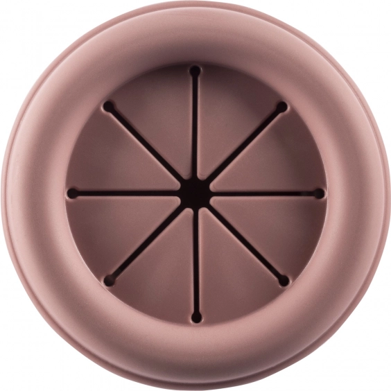 Castronul este fabricat din silicon alimentar sigur, netoxic și rezistent la spargere. Pentru copiii mici, siliconul este mai natural decât plasticul sau metalul. Copiii descoperă adesea lumea cu gura, iar atunci când se joacă cu castronul, nu există risc de rănire, deoarece este realizat dintr-un material elastic, moale și totuși foarte durabil. Ventuza antiderapantă puternică asigură că bolul rămâne fix pe masă sau pe tăvița scaunului înalt, prevenind răsturnarea sau căderea; pentru copiii mai jucăuși va fi foarte dificil să ridice bolul și să-l arunce pe jos. Un mare avantaj al siliconului este rezistența la mirosuri și la pătare. Dacă mâncarea rămâne în bol suficient de mult timp încât curățarea devine dificilă, este suficient să fierbeți bolul în apă clocotită – această metodă permite și sterilizarea. Potrivit pentru biscuiți, nuci, fructe și alte gustări.