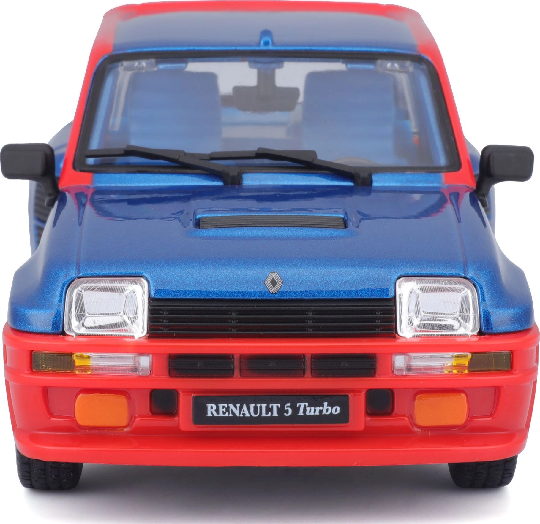 Modelul Bburago Renault 5 Turbo aduce o replică fidelă a legendarului automobil, cu aripi evazate iconice și elemente sportive. În culoare albastră cu accente roșii și inscripția proeminentă TURBO, arată ca un veritabil automobil de competiție. Ușile care se deschid dezvăluie un interior realist cu scaune și volan.