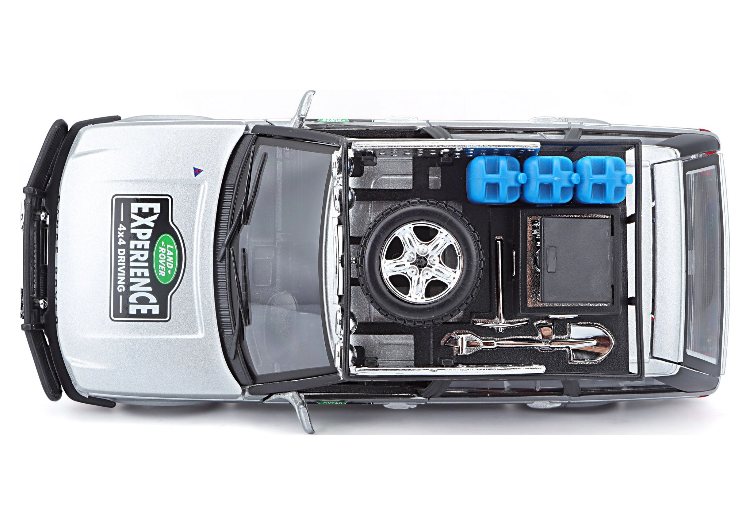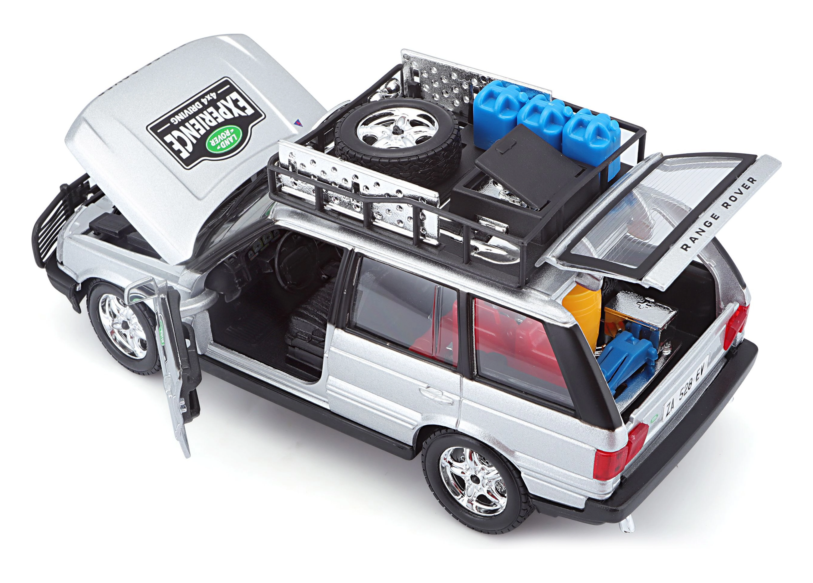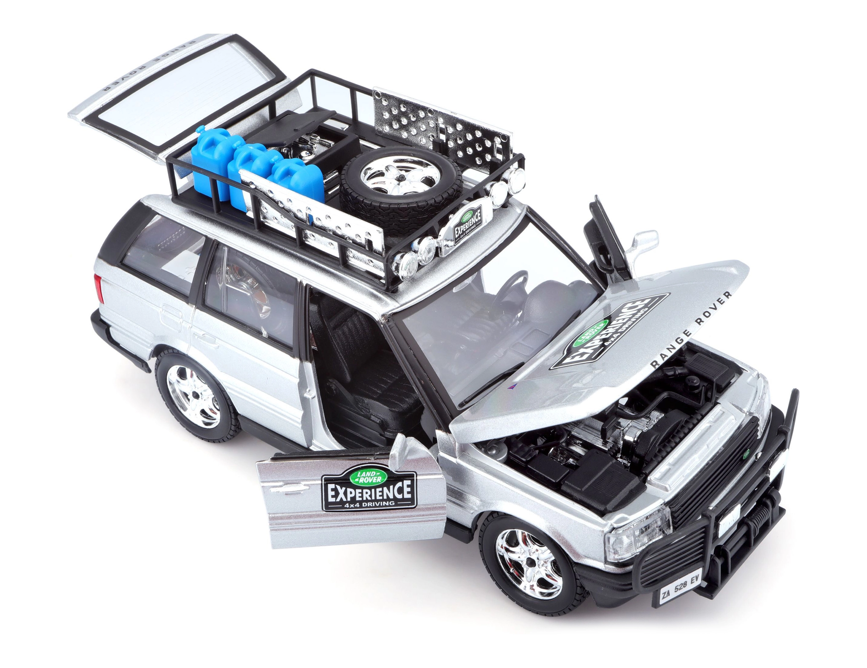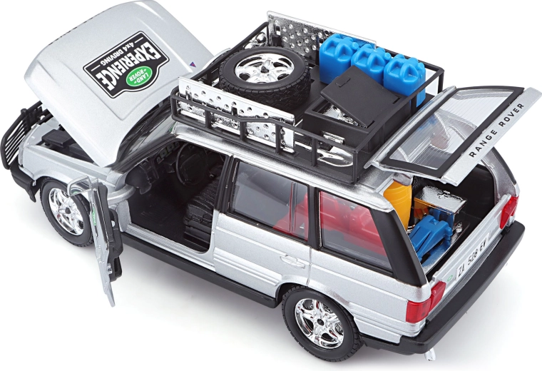 Acest model RANGE ROVER realizat cu precizie, la scara 1:24, aduce detalii autentice care vor încânta orice pasionat de vehicule off-road. Caroseria argintie, completată de portbagajul de plafon cu accesorii, bara frontală de protecție și autocolantele realiste, creează un aspect atractiv pentru joacă sau expunere.